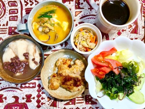 サイリウム餅も、ラカントで煮た小豆も、おかずもみんな冷凍貯金だ。レンジでチンして盛り付ける簡単ランチ。食事にぜんざいはどうかとも思ったが、食べたいものを食べる! スンドゥブは昨日の夕飯の余りです。 甘い、辛い、いろいろランチ。 サイリウム餅の…