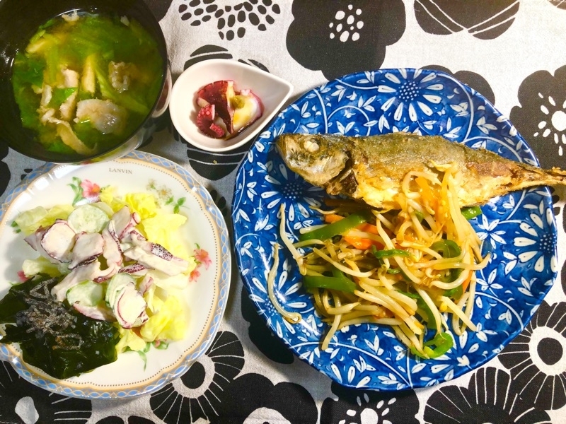 タコとキュウリのマヨネーズ和えで、後はサッパリ。